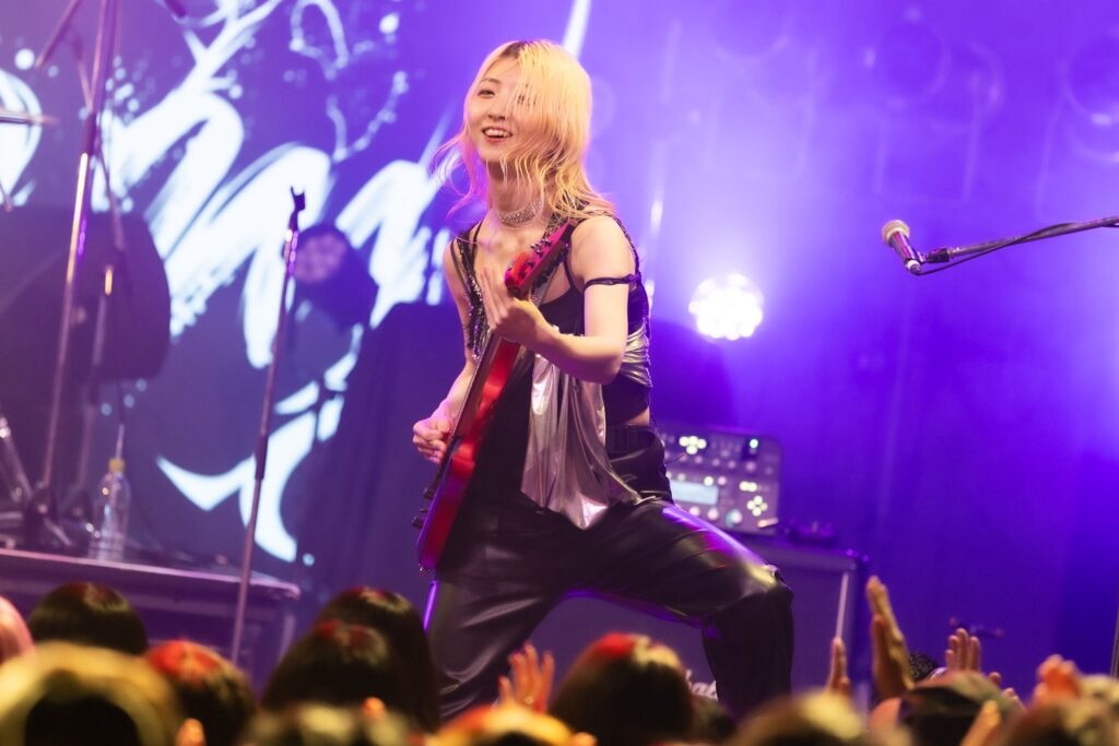 さらに勢いを増すように、彼らは『ハイウェイスター』を突きつけた。感情を剥き出しに爆走する楽曲の上で、しっかりエモい表情も組み込み、攻撃的な音で攻めるだけではない姿勢もさりげなく示していた。どの曲も、とにかく想像を超えたパワーと破壊力を持ってせまり来る。ANCHANGとSUSSYが巧みにツインでハモる面も見せるなど、荒れ狂う中に胸をつかむドラマを描き加えていくからこそ、彼らのライブに熱狂していた。