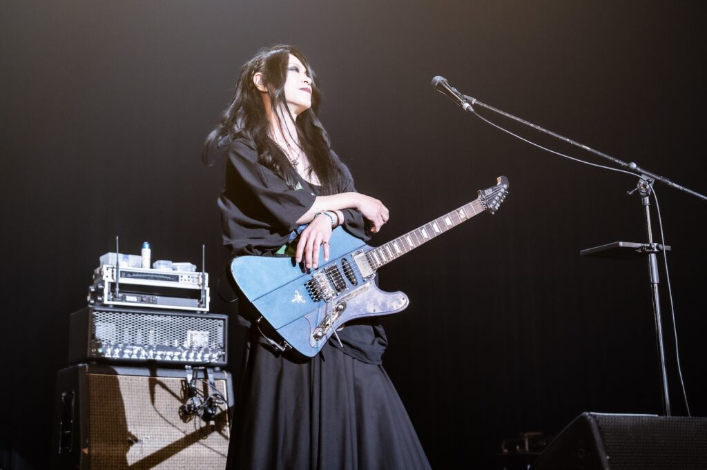 2番手に登場したHIRO(G)とSHUSE(B/ともにLa’cryma Christi)の姿に場内が色めき立つ。当初のイベント告知時には発表がなかった「KOJIソロ」の再現だ。インストで2枚のアルバムを発表しているアーティストとしての、これぞKOJI!という自由かつテクニカルなフレーズを妖艶なHIROとのツインギターで聴かせる。