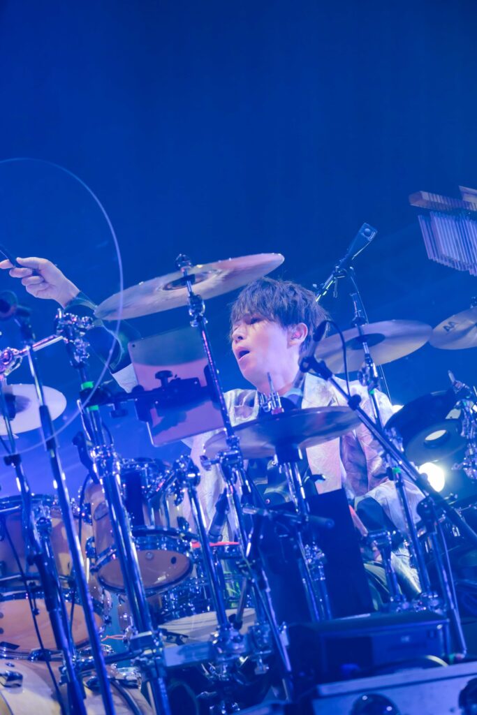ゆうやのスティックは大きな美しい軌道を描き、激しくもタイトなドラミングでしっかりと土台を支えた。