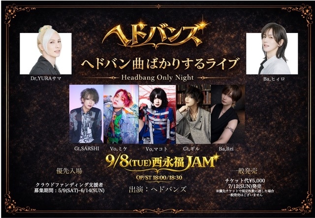 ヘドバン痛を軽くするためのアイテムの効果を実感させるために「実際にヘドバン痛を起こさせるライブ」をおこなうのは彼らならではの優しさなのかもしれない。しかも当日演奏するヘドバン曲のリクエストを募るために4月26日(日)の20:00よりYURAサマ・ヒィロによる『ヘドバンズ選曲会生配信〜あなたの好きなヘドバン曲教えてください』という番組の配信もおこなうとのこと。