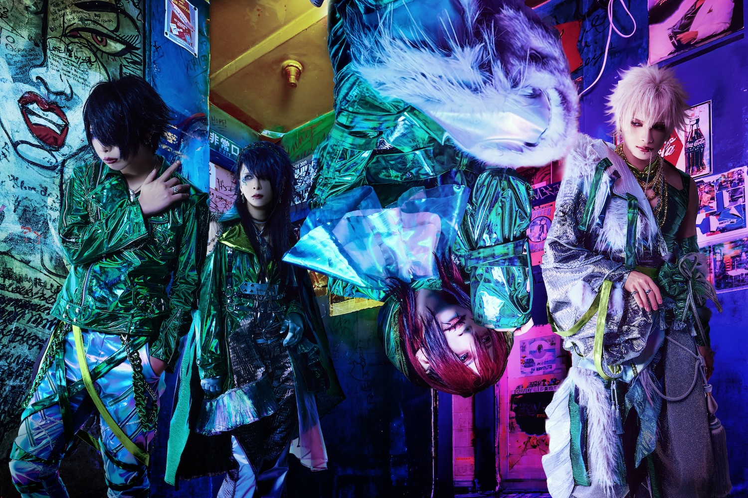 黄緑〜緑で統一されたビジュアルと、てるてる坊主を“逆さにした”ようなVo.六の姿がまず目を引く。