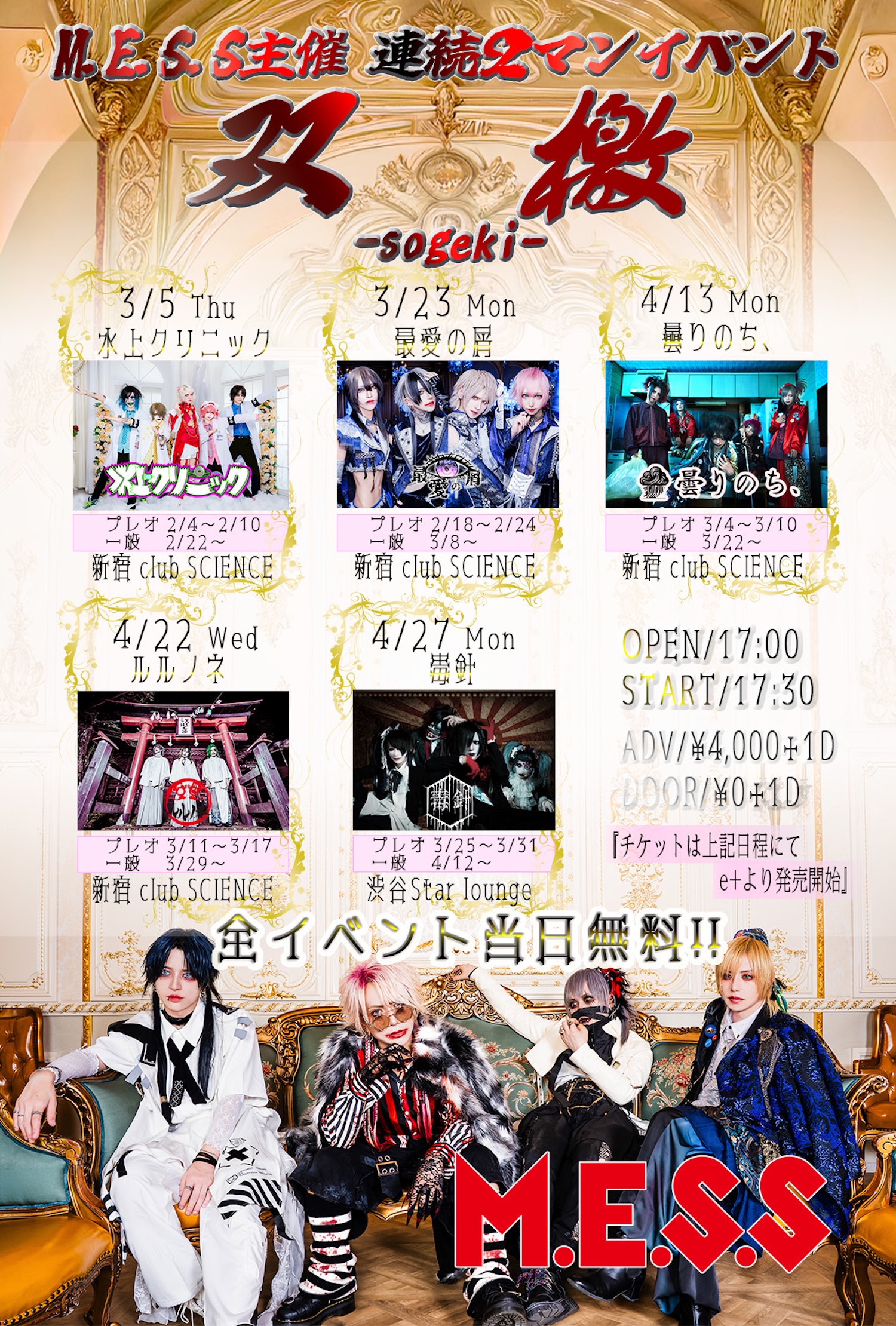 4/13(月) 新宿clubSCIENCE ※当日券無料