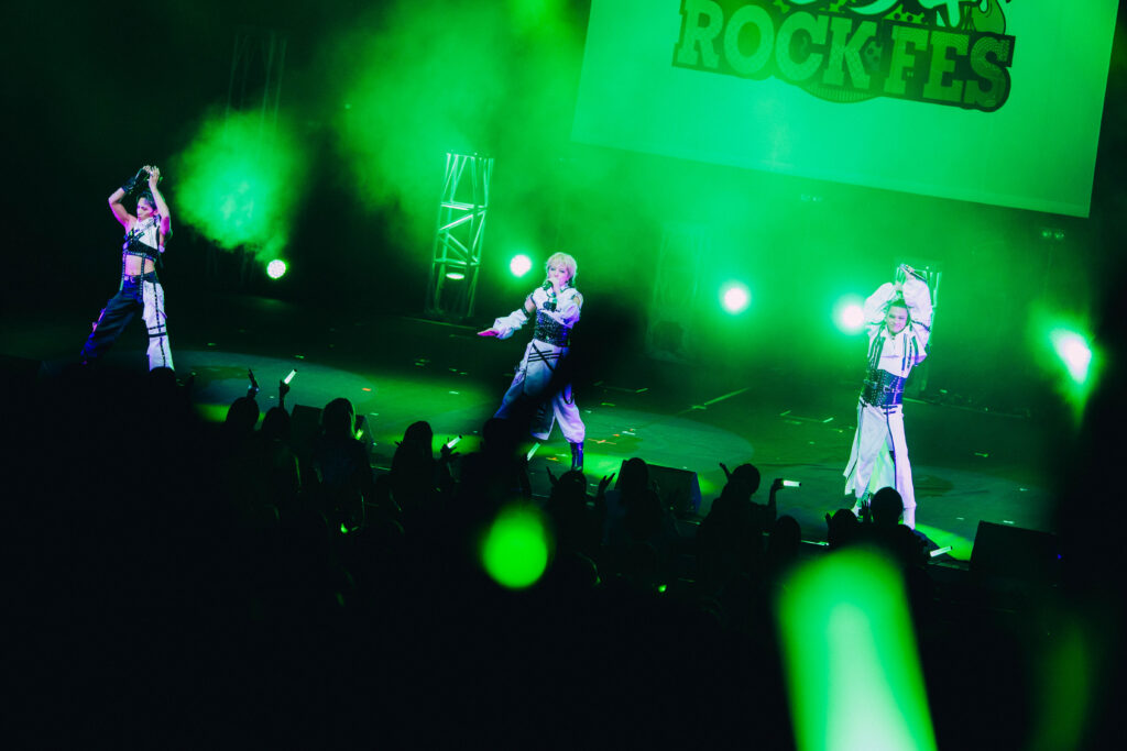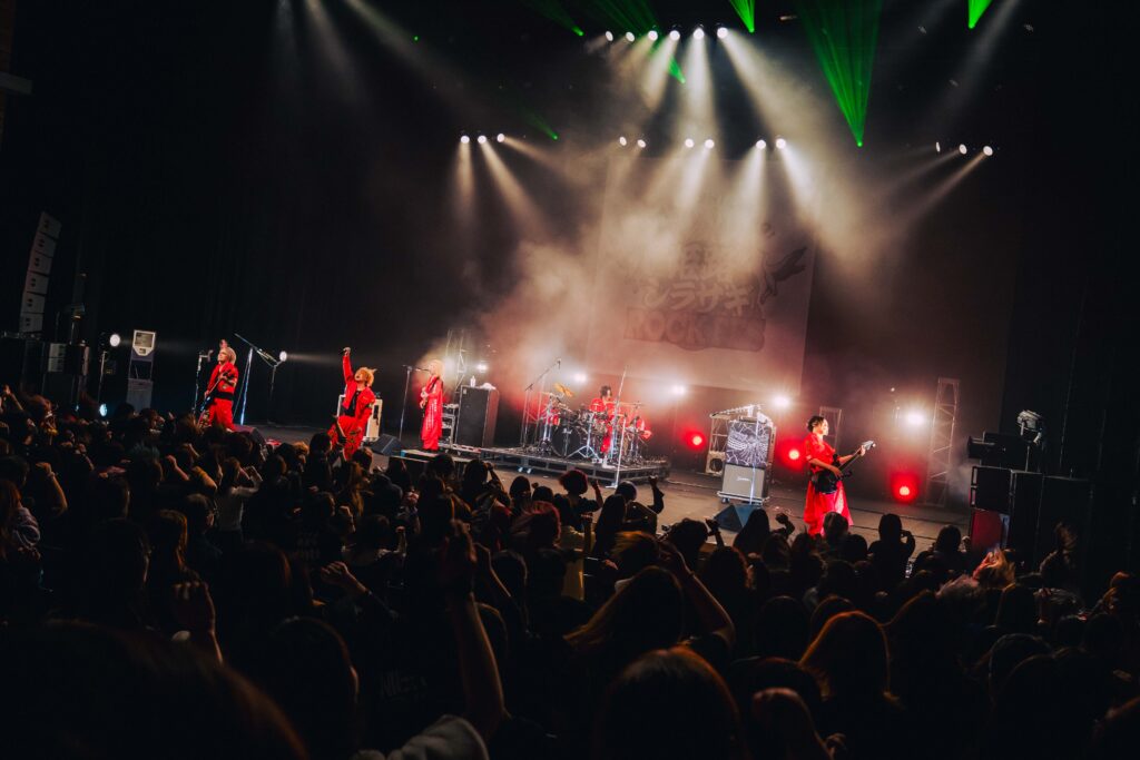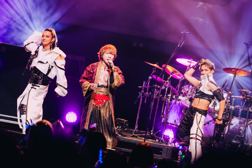 観客を激しく煽るYOMIを筆頭に、どのメンバーも悠然とステージに立ち、堂々とした姿を見せつけるよう。