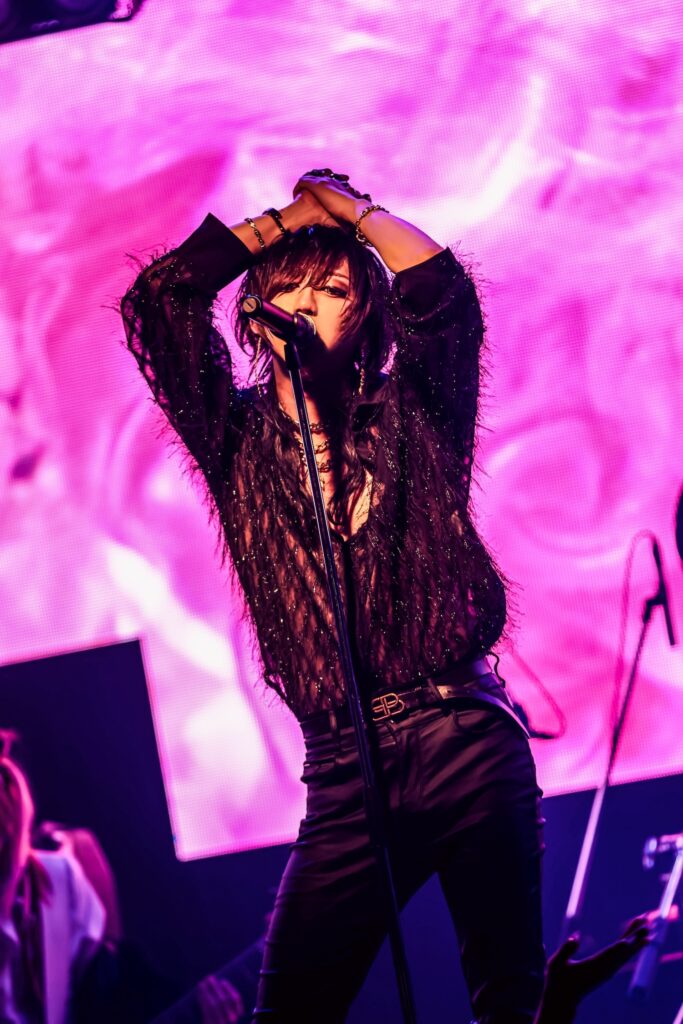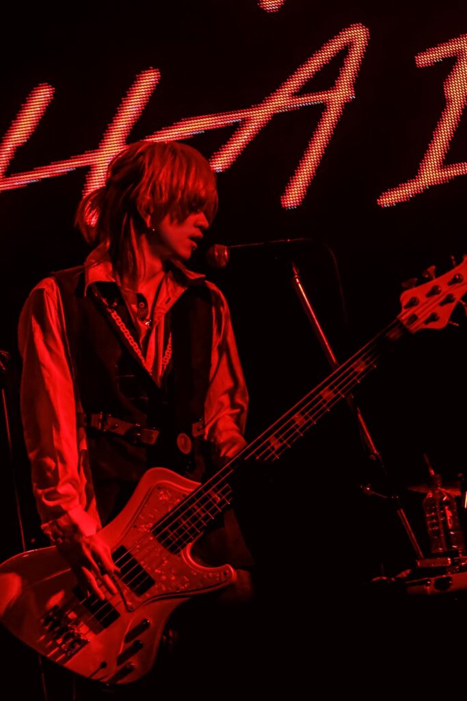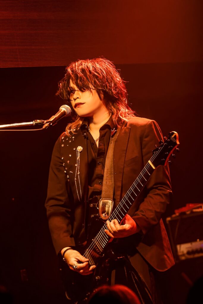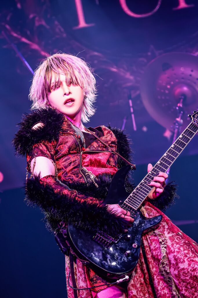 MCではイベントタイトルについて語る。変わっている集団、色んなバンドと比べても色が違う2つが良いところを見せようと付けたとのことである。自分たちらしく、この日に吐き出して欲しいと語り始まったのが「VENOM」。これまでの妖艶な、静な印象ではなく、動な楽曲である。ギターのRYUはギターをかき鳴らしながら、縦横無尽にステージを駆け巡り、LIEも楽曲を口ずさみながら、安定感を醸し出しつつギターを奏でる。