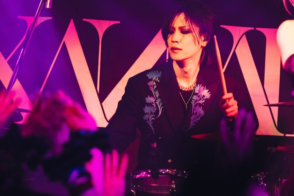 “それでも今日を生きてみたいの 私の為の聖なる戰争を——”と、生への苦しさと力強さを複雑に孕んだ『聖戰』を1曲目に掲げ、XANVALAが“タイマン”の舞台に乗り込んできた。開戦の合図に相応しい疾走感に溢れる曲である。実はこの日、XANVALAはフジテレビの朝の情報番組『ノンストップ!』で「令和のヴィジュアル系を牽引するバンド」として、レジェンド・東海林のり子さんのレポートにより紹介された。その解釈にまったくの異論なしのライヴを、2曲目以降も鮮やかに見せつけていくことになる。