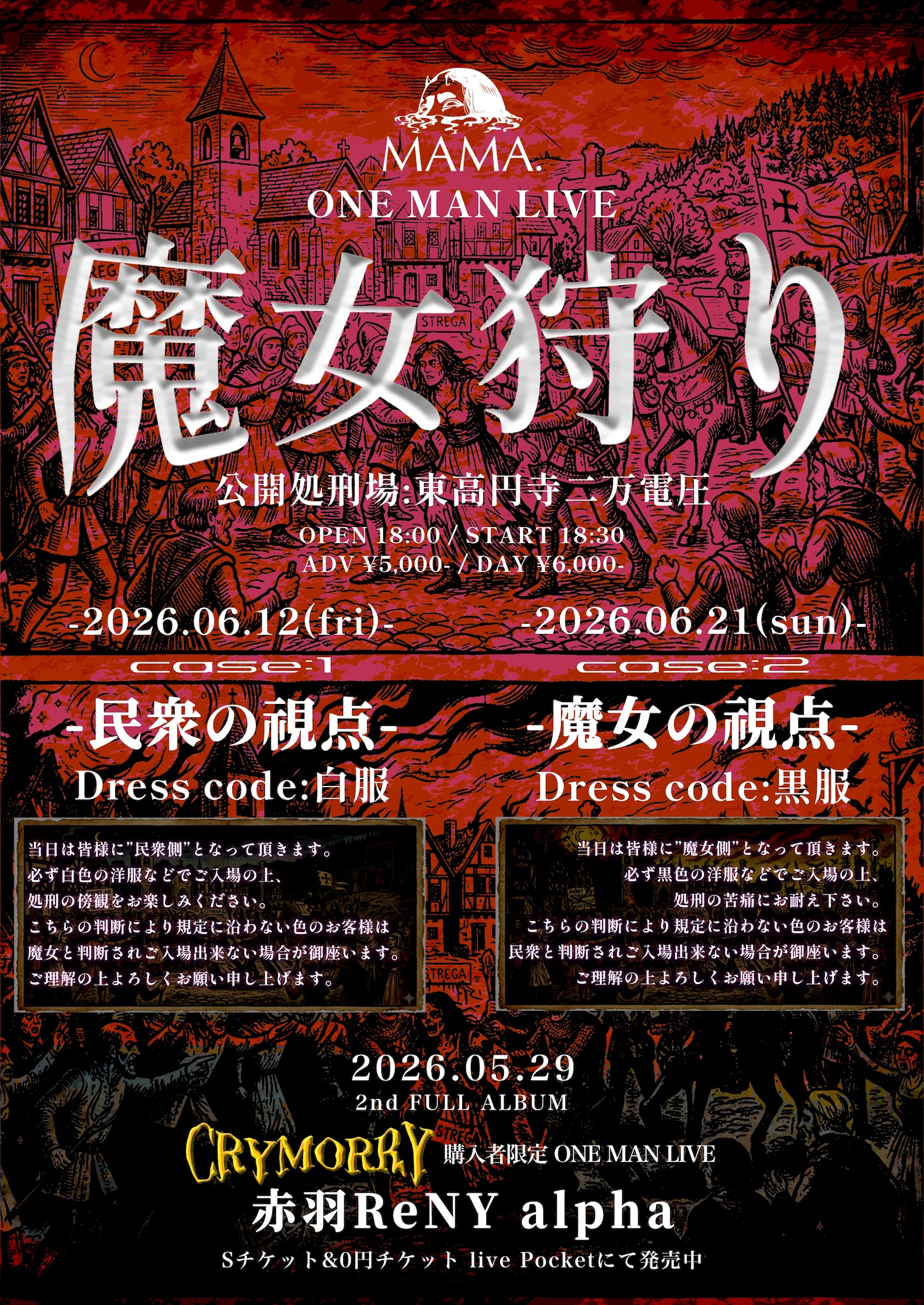 続いて6月には、東高円寺二万電圧を"公開処刑場"と銘打ったワンマンライブ「魔女狩り」が2公演にわたって開催される。