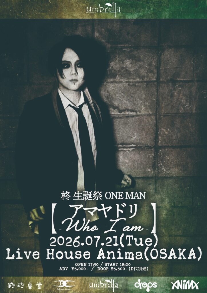 【umbrella】Gt.柊の生誕祭ワンマンライヴ<umbrella 柊 生誕祭 ONEMAN【アマヤドリ-Who I am-】>開催決定!