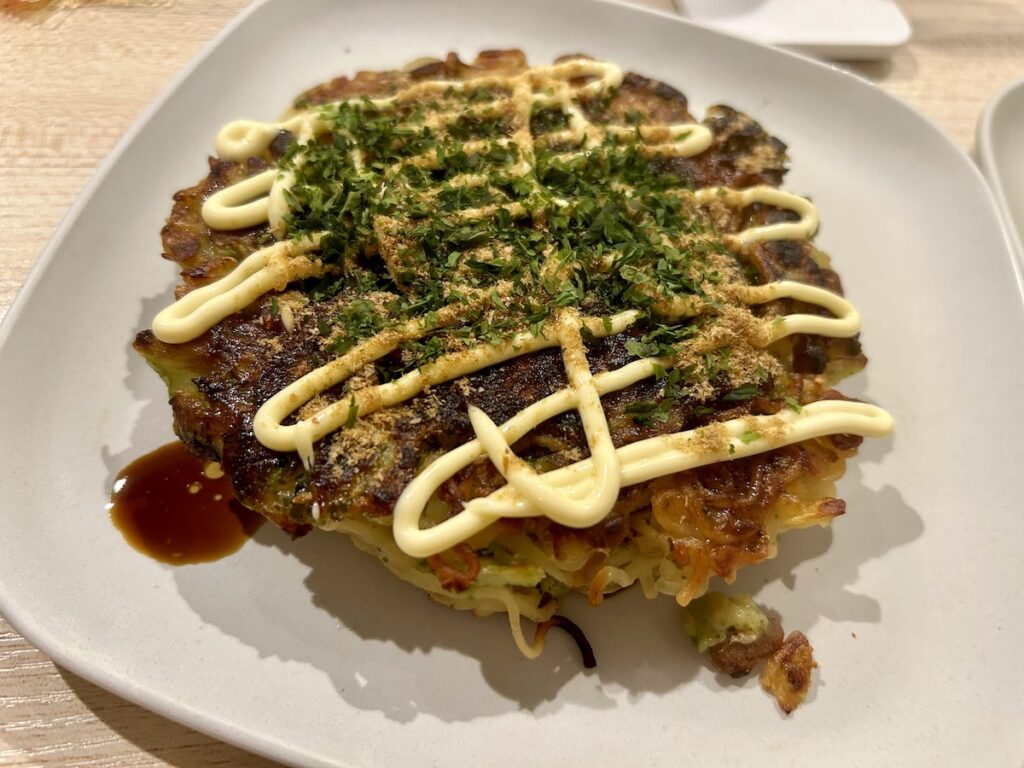 形を整えながら、通常のお好み焼きと同様に両面焼きます。