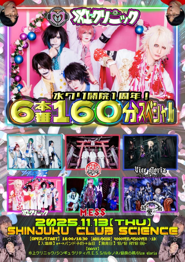 SPECIAL 特集 【水上クリニック】◆初スペシャルインタビュー◆唯一無二の医療系バンドを掘り下げる。 2025.11.05 2024年11月に始動した水上クリニック。 ボーカルのKevinが本物の医学生という、他に類を見ない医療系バンドだ。 VISUNAVI Japanでの初インタビュー。結成から1年を迎える彼らに、バンドの成り立ちから音楽のルーツ、そして未来への展望まで、たっぷりと語ってもらった。 初スペシャルインタビュー掲載中! 唯一無二の医療系バンドを掘り下げる!! >>記事はこちら 2025.11.5 LIVE ▪️水クリ開院1周年!6本番160分スペシャル 11/13(木)新宿club SCIENCE 出演: 水上クリニック/シンギュラリティ/M.E.S.S/ルルノネ/最愛の屑/Vice gloria OPEN/START 16:00/16:30 前売り/当日 ¥4000/¥4500 入場順 e+→バンド予約→当日 ★チケット: 発売日 e+ 10/10 10:00〜 https://eplus.jp/sf/detail/4410220001-P0030001 関連リンク ◆Official Link https://lit.link/mizucli 関連記事を見る 【水上クリニック】初スペシャルインタビュー◆唯一無二の医療系バンドを掘り下げる。11/13(木)新宿club SCIENCEにて周年主催<水クリ開院1周年!6本番160分スペシャル>開催! 【水上クリニック】2ndシングル「トキメキショット」を配信スタート! 【水上クリニック】新ヴィジュアルと初の2ndMV公開!さらになりゆきでミニワンマン開催!? 関連キーワードでチェック水上クリニック